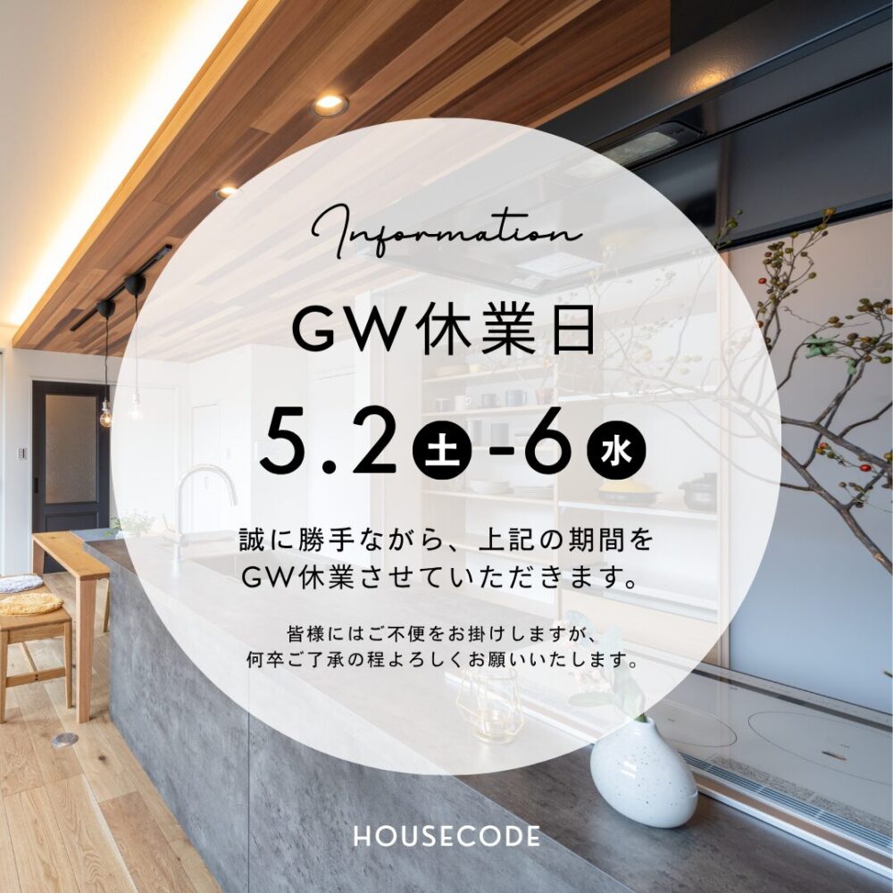 fbpx GW休業のお知らせ - HOUSE CODE | ハウスコード